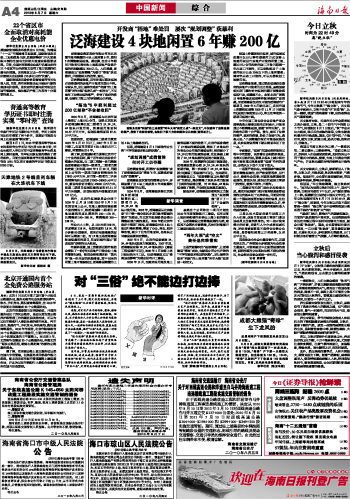 海南日报 中国新闻综 合 004 2010-08-071 2010年08月07日 星期六