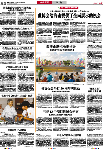 海南日报 本省新闻时 政 002 2010-08-081 2010年08月08日 星期日