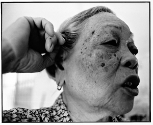 此后两年,当我寻访到多位当年如花似玉的“慰安妇”时,出现在眼前的都已是身患残疾、满脸风霜的老阿婆了。这些海南“慰安妇”多生活在偏僻山区,常年被头痛、腰痛、腹痛、肢体残疾等病魔缠绕,生活艰难。有的一生未能生育,日子过得孤苦伶仃。当时,她们年纪最大的87岁,最小的也已经80岁,好几位老人都瘫痪在床,生活无法自理。她们中的大部分人至今生活在60多年前耻辱的阴影中,心灵备受煎熬。虽然悲剧已经过去60多年,但日军的暴行仍历历在目,时时折磨着她们。被迫成为“慰安妇”的陈林村老人在采访时紧紧拉着我的手,眼泪不断从失明的双眼涌出来,“我说,我说出来,我要控诉日军的暴行……”颤动的声音从老人紧闭了60年的双唇跳出,我知道做出这一决定对她来说是多么不容易。而在这之前,我并没有想到还有这样一批老人把苦难深藏至今,那是一种什么样的生活?什么样的人才能承受如此生命之重啊?惨遭蹂躏的“慰安妇”们身为受害者,却自认无颜面对亲人和邻里。有的“慰安妇”因此不愿回忆过去,更不愿面对镜头。在陵水“慰安妇”陈亚扁的寻访中,我前后去了五六次,和老人谈心,带老人寻医问药,赢得老人信任后,才拍下一组老人的纪实照片。有的老人,甚至在接受采访后不久就去世了,带着一生的不幸,留下了人生最后的影像。