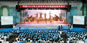 | 8月8日,我省歌舞团的演员们在世博园区演出《海南岛》。当天,2010年上海世博会海南活动周开幕式在上海举行。