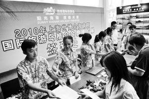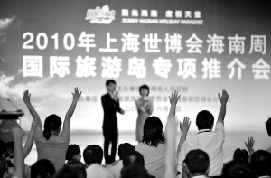 ↑8月8日下午,世博会海南活动周国际旅游岛专项推介会在上海外滩茂悦大酒店举行。