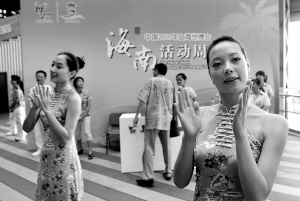 ↑8月8日,美丽的海南姑娘们热情欢迎各地嘉宾。