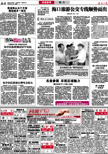 海南日报 本省新闻 004 2010-08-091 2010年08月09日 星期一
