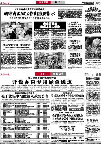 海南日报 中国新闻 005 2010-08-091 2010年08月09日 星期一
