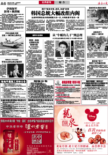 海南日报 世界新闻 006 2010-08-091 2010年08月09日 星期一