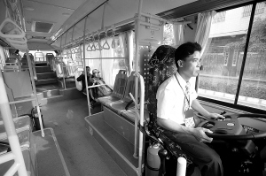 | 儋州那大市区公交车上乘客稀少。 本报记者 苏晓杰 摄 |