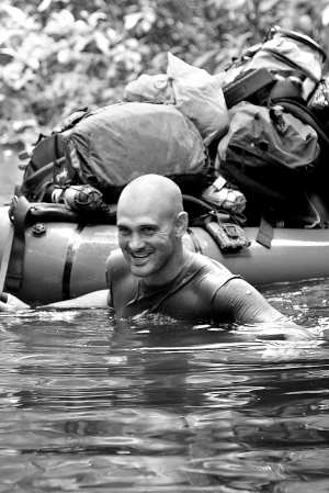 | 这是2008年12月拍摄的埃德·斯塔福德在丛林中涉水前行的资料照片。新华社/法新 |