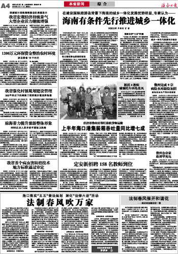 海南日报 本省新闻 004 2010-08-111 2010年08月11日 星期三