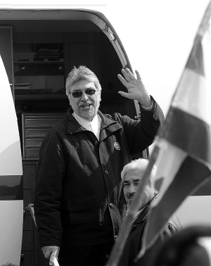 8月10日,在巴拉圭首都亚松森附近的卢克,巴拉圭总统费尔南多·卢戈登上前往巴西圣保罗的飞机时挥手告别。 被诊断罹患淋巴癌的巴拉圭总统费尔南多·卢戈10日启程前往巴西圣保罗,将在当地叙利亚-黎巴嫩医院进行全面体检,并确定治疗方案。 新华社/法新