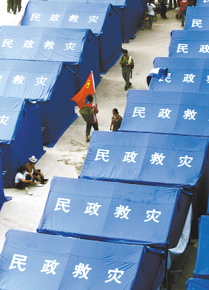 在舟曲县第三中学群众安置点,39岁的藏族同胞高将革坐在帐篷前乘凉,当记者走过时,还微笑地向记者打了招呼。记者与高将革聊了一会,才知道他和吴玉兰家一样,汶川地震和这次泥石流灾害都眷顾他家。