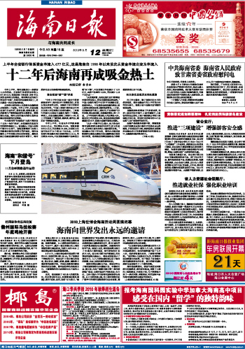 海南日报报业集团旗下媒体: 海南日报 | 南国都市报 | 南海网 | 南岛晚报 | 证券导报 加入收藏 | 设为首页