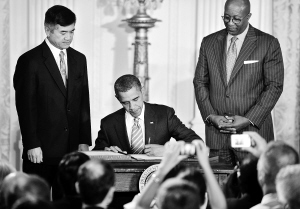 | 8月11日,美国总统奥巴马(中)在首都华盛顿白宫签署制造业促进法案。奥巴马当天签署了制造业促进法案,旨在帮助制造业降低成本,恢复竞争力,创造更多就业岗位。 新华社记者 张军 摄 |