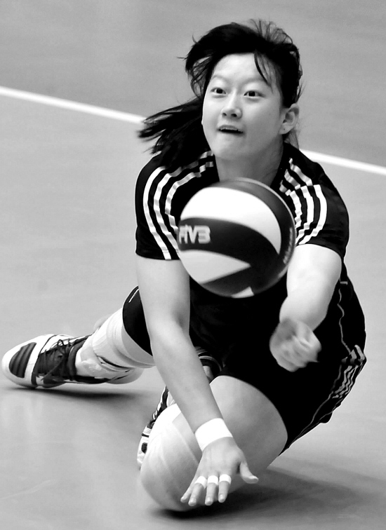 8月12日,中国女排在澳门综艺馆进行训练,备战将于8月13日至15日举行的世界女排大奖赛澳门站的比赛。图为中国女排队员陈丽怡在训练中救球。 新华社发