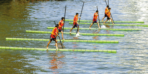 脚踩独竹水上漂