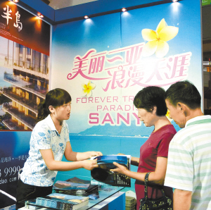 | 8月8日至8月10日,三亚精品楼盘展示会在上海举行,会展吸引了不少上海市民。 本报记者 刘贡 摄 |