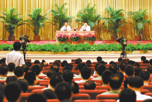 12日,中宣部、中央直属机关工委、中央国家机关工委、教育部、解放军总政治部、中共北京市委在北京联合举办形势报告会,邀请中央农村工作领导小组副组长、办公室主任陈锡文作“当前我国农村改革发展的形势”的专题报告。新华社发