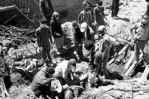 这张2010年8月13日由印度国防部发布的照片显示的是救援人员在印控克什米尔列城被泥石流毁坏的建筑物内搜寻幸存者。 据法新社报道,近日在印控克什米尔拉达克以及周边地区发生的山洪和泥石流灾害已经导致185人死亡。 新华社/法新