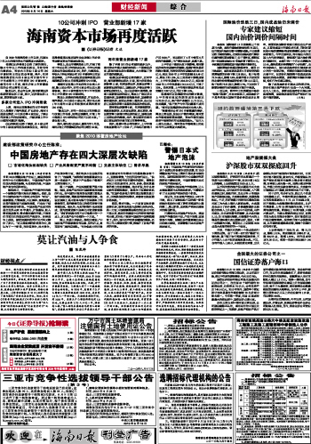 海南日报 财经新闻 004 2010-08-141 2010年08月14日 星期六