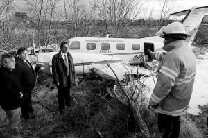 8月13日,一架小型飞机在布宜诺斯艾利斯省的梅塞德斯市坠毁。由于飞机没有爆炸,因此搭乘飞机的布宜诺斯艾利斯省司法和安全局局长卡萨尔和最高法院检察官法尔布幸免于难。图为布宜诺斯艾利斯省省长丹尼尔·肖利(左三)在查看事故现场。 新华社发