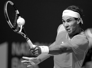 在费德勒晋级前,世界排名第一位的西班牙选手纳达尔也破费了些周折才以2:1战胜德国选手菲利普·科尔什雷伯。