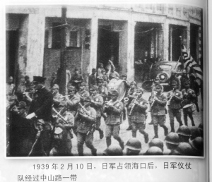 | 1939年2月10日,日军占领海口后,日军仪仗队经过中山路一带。 (资料图片) |