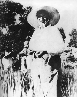 已是下午时分,红光农庄的农民简直不相信自己的眼睛:机耕道上走来了毛主席,没有事先通知,没有一点征兆,伟大领袖毛主席真实地出现在人们的面前。在县委第一书记刘致台的引导下,毛主席缓缓前行,随意走进一户农家,和迎上前来的女主人打招呼。这户人家姓邓,女主人正害眼疾,一方面看不太清,更主要的是做梦也没想到毛主席进屋来了,她一边热情迎接,一边还问:“老同志,你是哪里来的?”