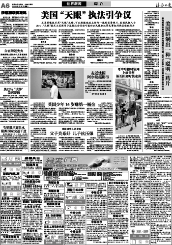 海南日报 世界新闻综 合 006 2010-08-161 2010年08月16日 星期一