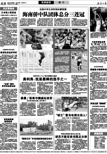 海南日报 体育新闻综 合 008 2010-08-161 2010年08月16日 星期一