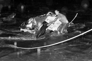8月15日,两名男子在洪都拉斯首都特古西加尔巴的洪水中互相救助。 洪都拉斯突发灾难监测局15日说,该国首都特古西加尔巴当天晚间突降暴雨,目前已造成2人死亡。 新华社发(豪尔赫·皮内达摄)