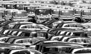 | 8月16日,准备出口和内销的汽车停放在日本横滨的一个停车场里。