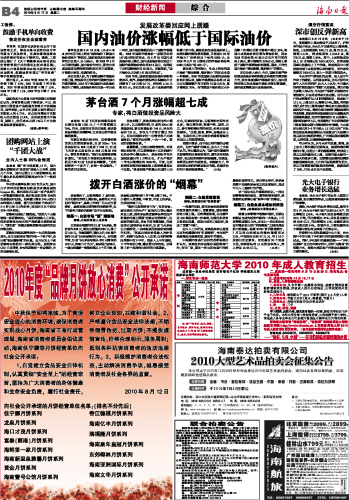 海南日报 财经新闻综 合 012 2010-08-171 2010年08月17日 星期二