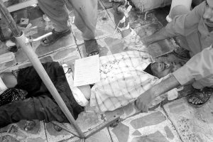 | 8月17日,巴格达一名在爆炸中受伤的男子接受救治。新华社/法新 |