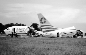 哥伦比亚一架客机16日凌晨即将降落时疑遭雷击坠毁,机身断为3截。全部125名乘客和6名机组人员中,大多数无恙或受轻伤,1人丧生。