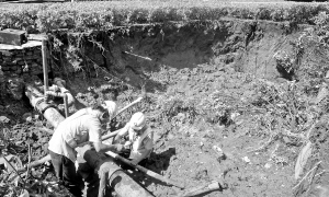 据了解,该地陷塌方深约1.2米,最宽处约7米。市排水管道所负责人告诉记者,塌方造成长约40米的排水管道毁坏,但没有对电杆造成损坏。该所将安排人员立即修复排水管,并与自来水公司、电力等部门合作,查找事故原因并做好施工防范工作。据其估计,抢修作业面积约130平方米,深约4米,需15至20天才能完成任务。