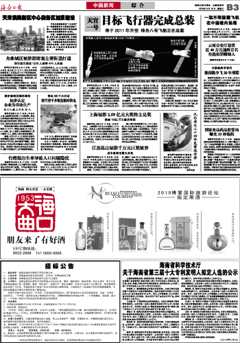 海南日报 中国新闻综 合 011 2010-08-181 2010年08月18日 星期三
