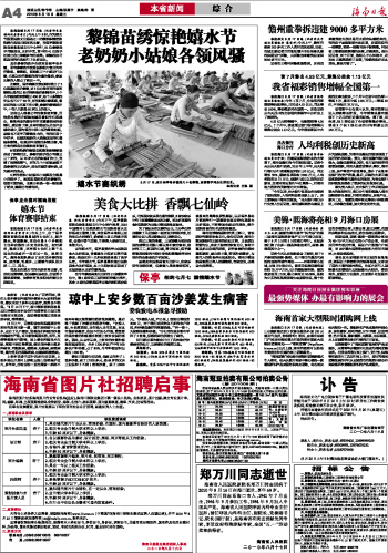海南日报 本省新闻综 合 004 2010-08-181 2010年08月18日 星期三