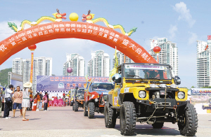 | 8月18日上午,2010中国(三亚)国际热带雨林汽车越野挑战赛发车仪式在三亚市鹿回头广场举行。 本报记者 苏建强 摄