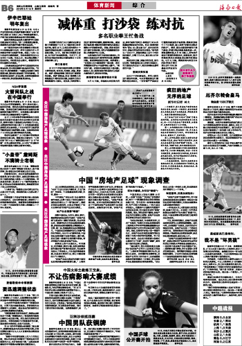 海南日报 体育新闻综 合 014 2010-08-191 2010年08月19日 星期四
