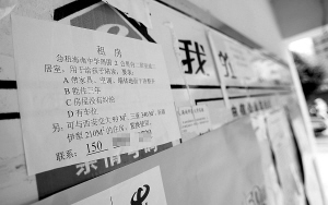 8月19日,随着开学日子的临近,在海南中学附近的某小区,急租房子为孩子陪读的广告日益增多。除了购买、租用外,用心良苦的家长还提出置换房产使用等方式,寻找在学校附近的房子用于陪读时居住,为此,海口部分重点中小学附近的陪读房成为房产市场上的“香饽饽”。 本报记者 张杰 摄