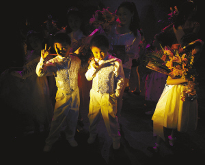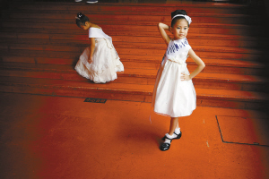 | →参赛小选手李秋含(前)在做登台前的准备。 |