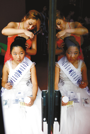 浓妆、高跟鞋、猫步、竞争,这些昔日只出现在成人世界中的词汇,如今也成了这些参赛小选手生活中的关键词。家长、幼儿教育机构、模特经纪机构则联手将这些孩子推向了一条新的“成名之路”。