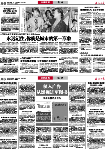 海南日报 本省新闻焦 点 006 2010-08-201 2010年08月20日 星期五