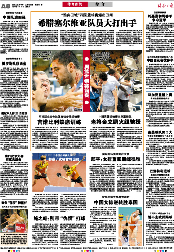 海南日报 体育新闻 008 2010-08-211 2010年08月21日 星期六