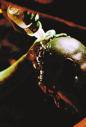 | 中场休息的拳手。 本报记者 张杰 摄 |