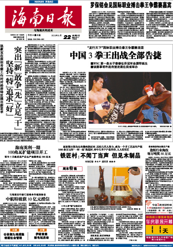 海南日报 首版 001 2010-08-221 2010年08月22日 星期日