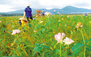 田独镇负责协调基地建设的工作人员彭伟然说,兰德公司向农民租地,每亩年租金1400元,同时给农民分红,每亩每年1100元。也就是说,出租土地农民每亩年获利2500元。除了地租,村民还可以在公司里打工,当产业工人。据了解,博后村现在有100多位农民在“玫瑰谷”里打工,平均每人月薪1000元左右。