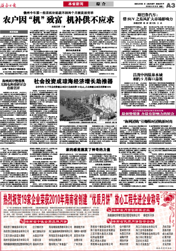 海南日报 本省新闻 003 2010-08-231 2010年08月23日 星期一