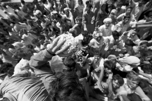 8月23日,在巴基斯坦旁遮普省南部穆扎法加尔附近的洪灾地区,灾民争抢救济粮食。 由于灾区地处偏远加之灾民众多,粮食及饮用水普遍严重短缺。自今年7月底以来,巴基斯坦雨季暴雨不断造成洪灾,迄今已致使1500多人丧生,2000万人受灾,至少16万平方公里的国土被洪水淹没。 新华社记者 吕小炜 摄