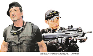 | 李连杰(右)在《敢死队》中搭档史泰龙