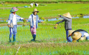 8月22日是星期天。三亚市天涯镇风景优美的门文村田野上,十几名身着校服的中学生在稻田里插秧。暑假已近尾声,乡下的孩子以帮助父母耕种度过一个充实的暑期。 本报记者 苏建强 摄